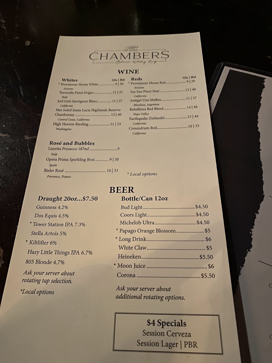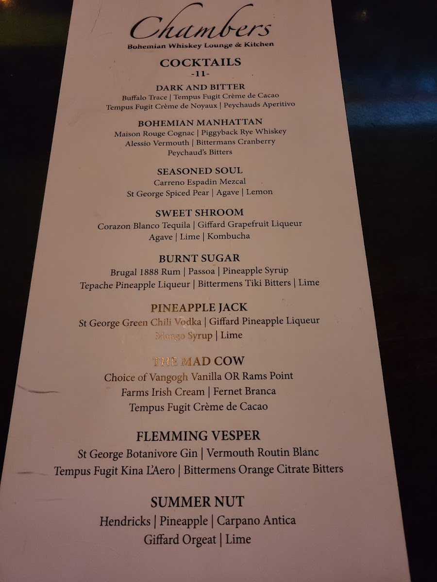 Chambers Bohemian Whiskey Lounge & Kitchen Menu (2025 Update)